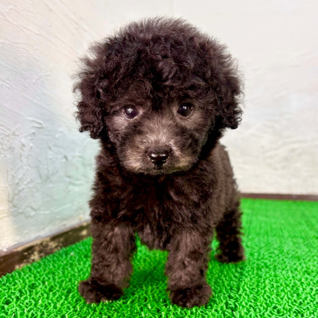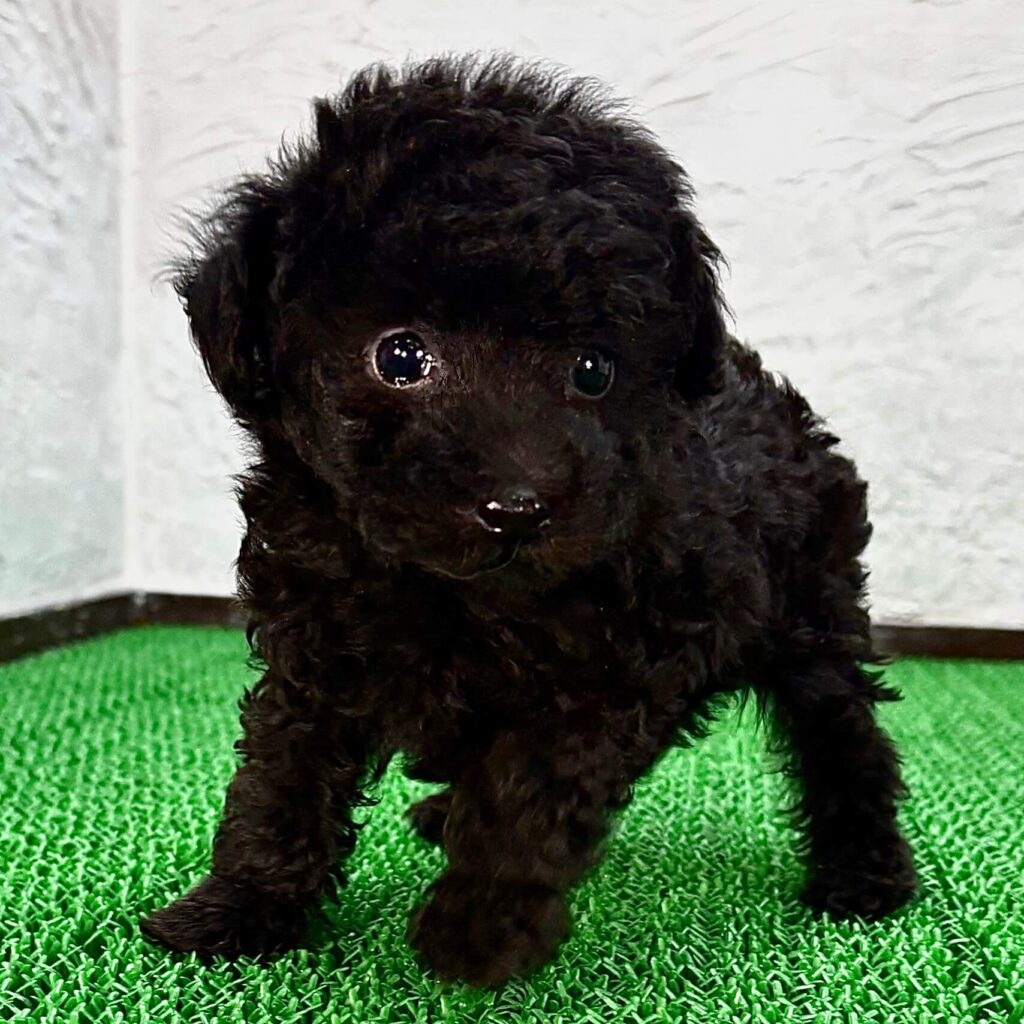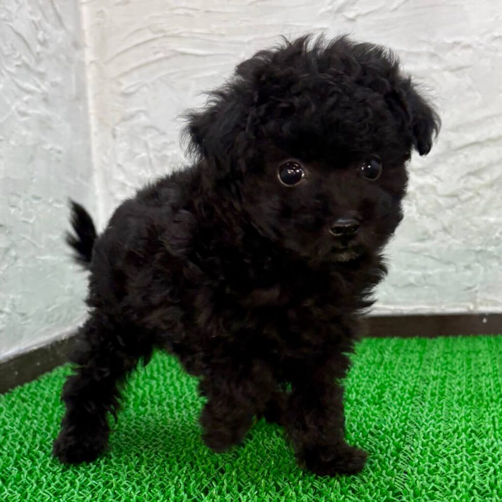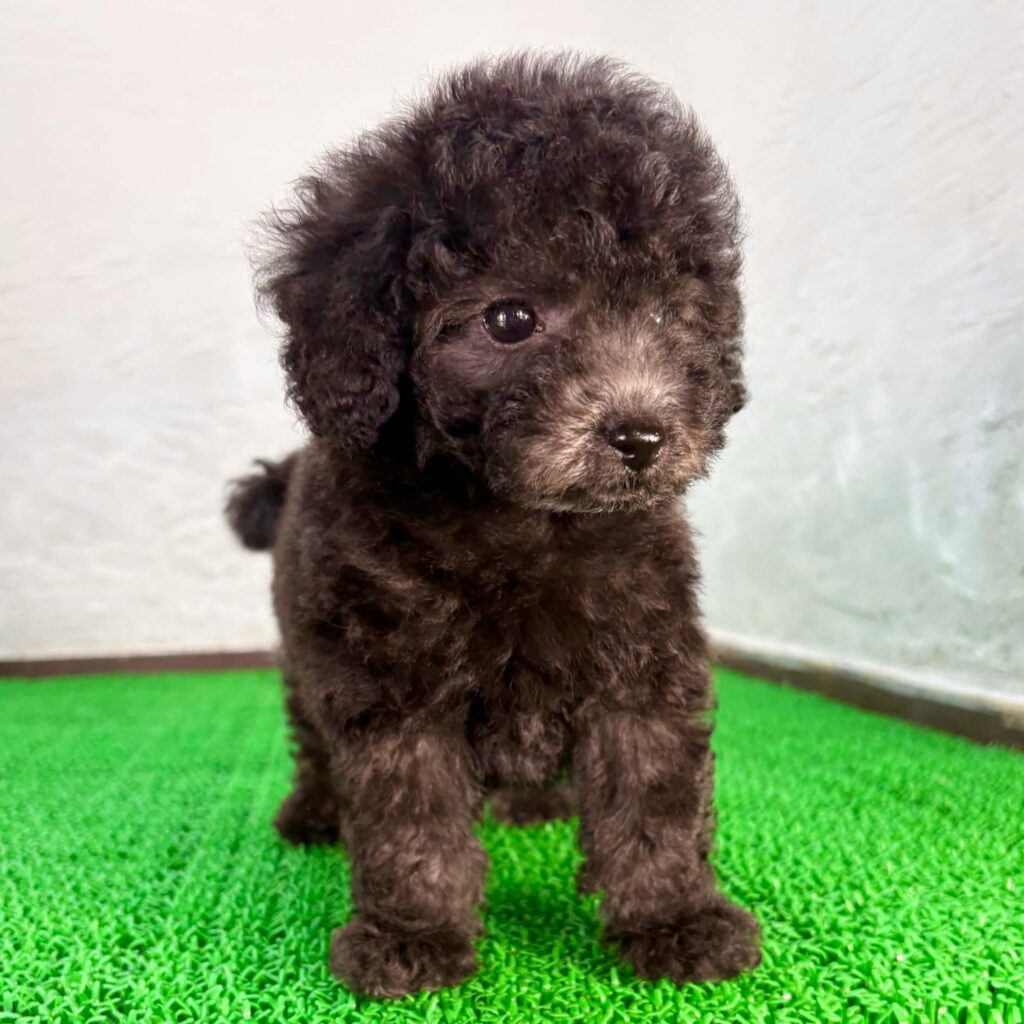 | ブラック | 光沢のある黒色の被毛が特徴で、落ち着いた印象のトイプードルです。 |