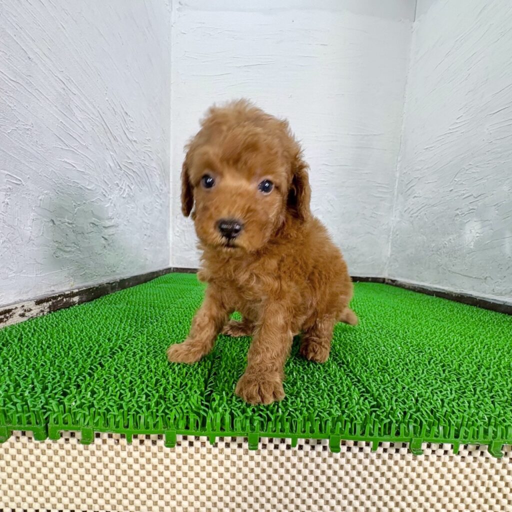 あたたかみのある美しいレッドカラーが魅力の、トイプードルの男の子がマルプリティに仲間入りしました。ふんわりとした巻き毛と、まんまるな瞳がとてもかわいい子犬で、トイプードルならではの上品さと愛らしさを兼ね備えています。抱き上げると安心したように身をゆだねてくれる姿は、思わず笑顔になってしまう魅力があります。