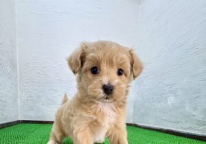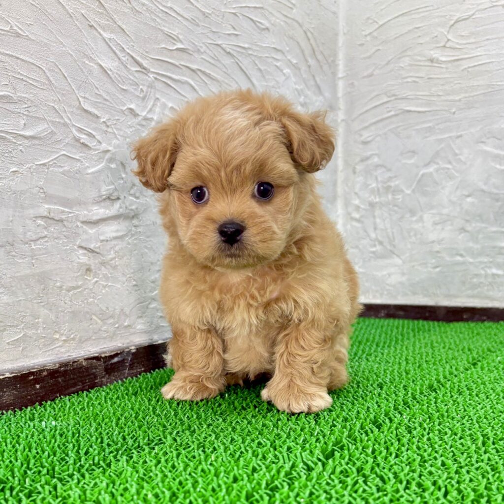 ペキニーズ×トイプードルの男の子が、マルプリティに仲間入りしました。柔らかくふんわりとしたアプリコットの毛色がとてもかわいく、丸い瞳と愛らしい表情が印象的な子犬です。甘えん坊で人懐っこく、抱っこされると安心したように体を預けてくれる性格は、ミックス犬ならではの温かさと愛らしさを兼ね備えています。初めて会う方にもすぐに打ち解け、家族の一員としてすぐに馴染むことができる子です。