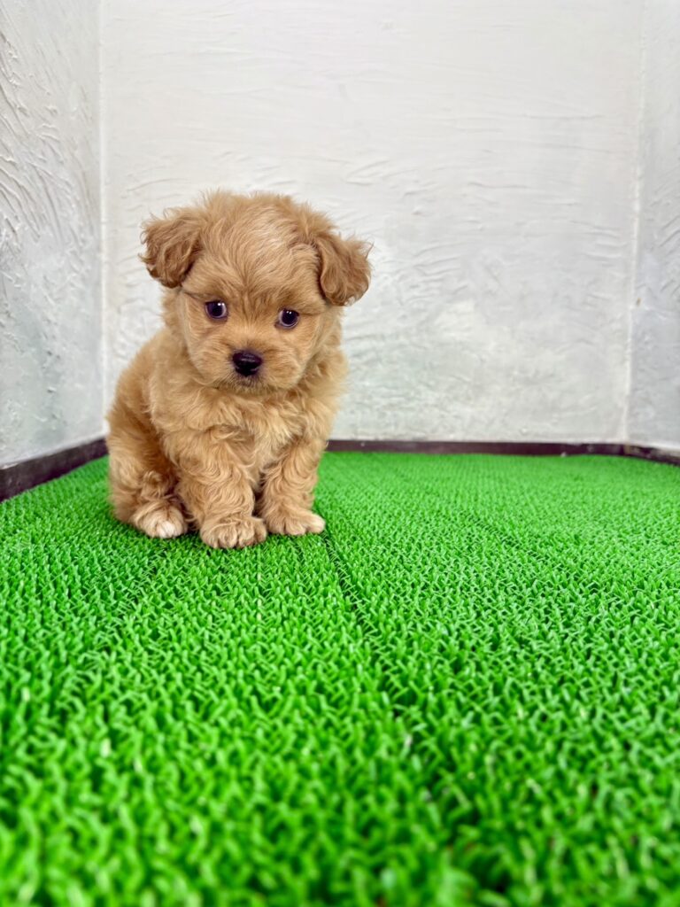 アプリコットの毛色は成長とともにさらに艶やかになり、カットスタイルによって表情も変化する楽しさがあります。甘えん坊で家族思いのこの男の子は、一緒に過ごすほど愛情が深まる存在です。初心者向けで飼いやすいミックス犬をお探しの方や、千葉・東京・関東で子犬販売を検討中の方に、ぜひおすすめしたい特別な一匹です。