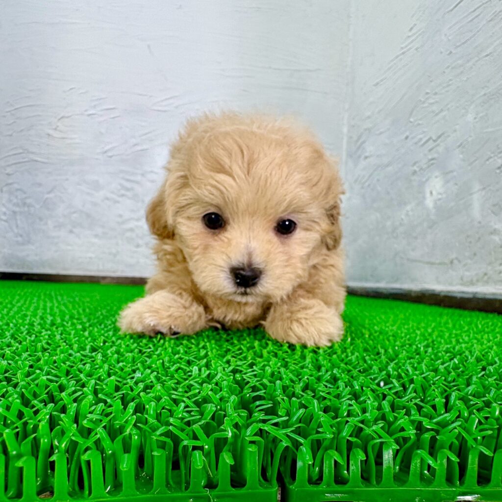 やさしく上品なクリームカラーの被毛がふんわりと広がる、マルプー×マルプーのミックス犬の女の子がマルプリティに仲間入りしました。柔らかな毛質と丸みのあるお顔立ちがとてもかわいく、見ているだけで心がほっと和む子犬です。ミックス犬ならではの穏やかな雰囲気と、親しみやすい表情が魅力で、毎日の暮らしに自然と溶け込んでくれます。