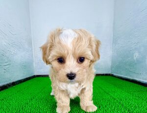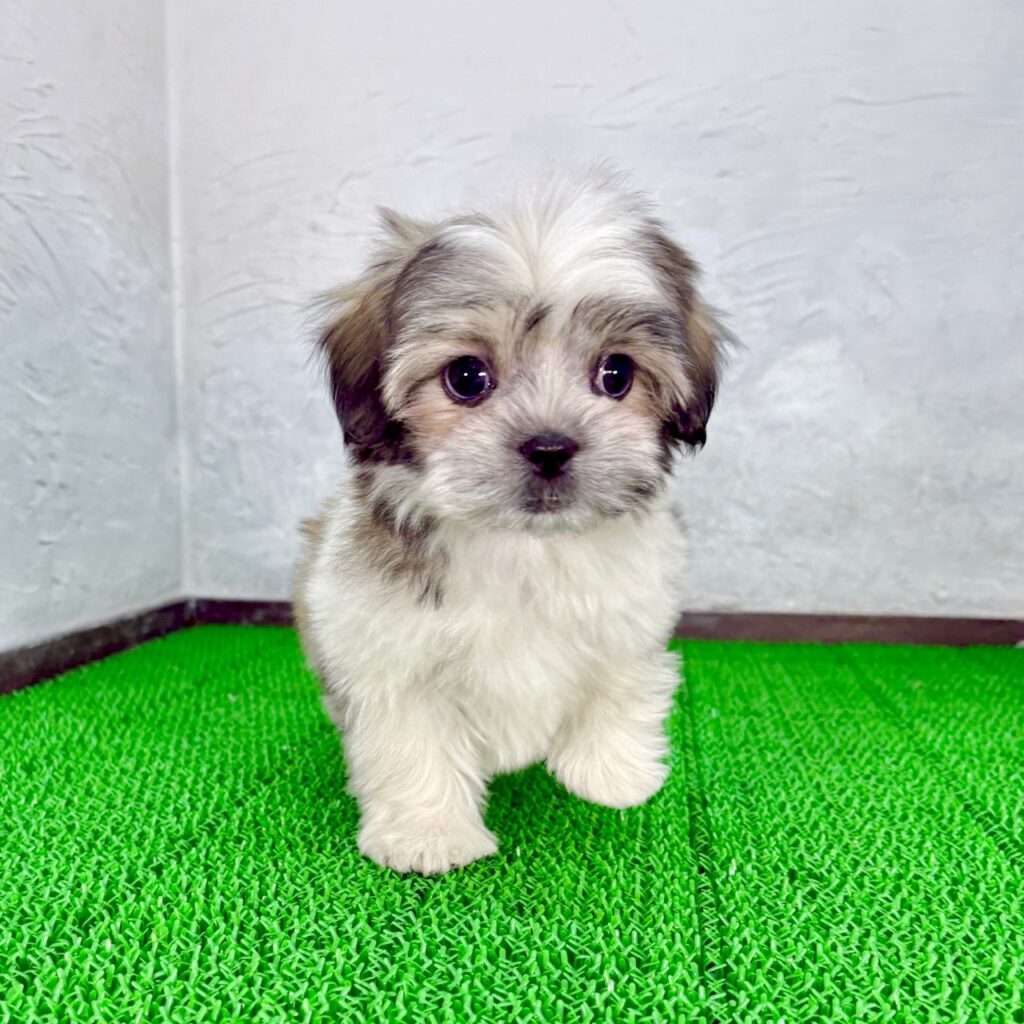 ふんわりとしたゴールド&ホワイトの被毛が優しい印象を与えてくれる、マルチーズ×シーズーのミックス犬の男の子がマルプリティに仲間入りしました。丸みのあるお顔立ちにくりっとした瞳がとてもかわいく、見ているだけで自然と笑顔になってしまう子犬です。ミックス犬ならではの個性と愛らしさが詰まった存在です。