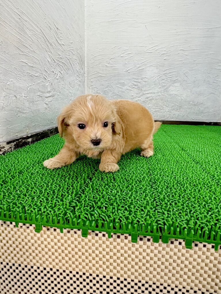 ふんわりとしたアプリコットの毛色がとてもかわいい、ミックス犬 マルプー の男の子 “カリメロ君” をご紹介します。元気いっぱいで甘えん坊な性格を持ち、見ているだけで自然と笑顔になる愛らしさが魅力です。ミックス犬ならではの個性豊かな雰囲気があり、千葉・東京・関東エリアでも初心者向けで飼いやすい子犬としておすすめできます。