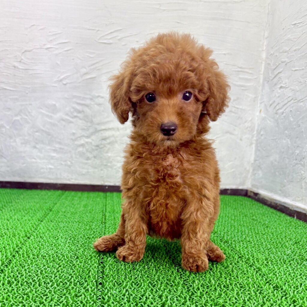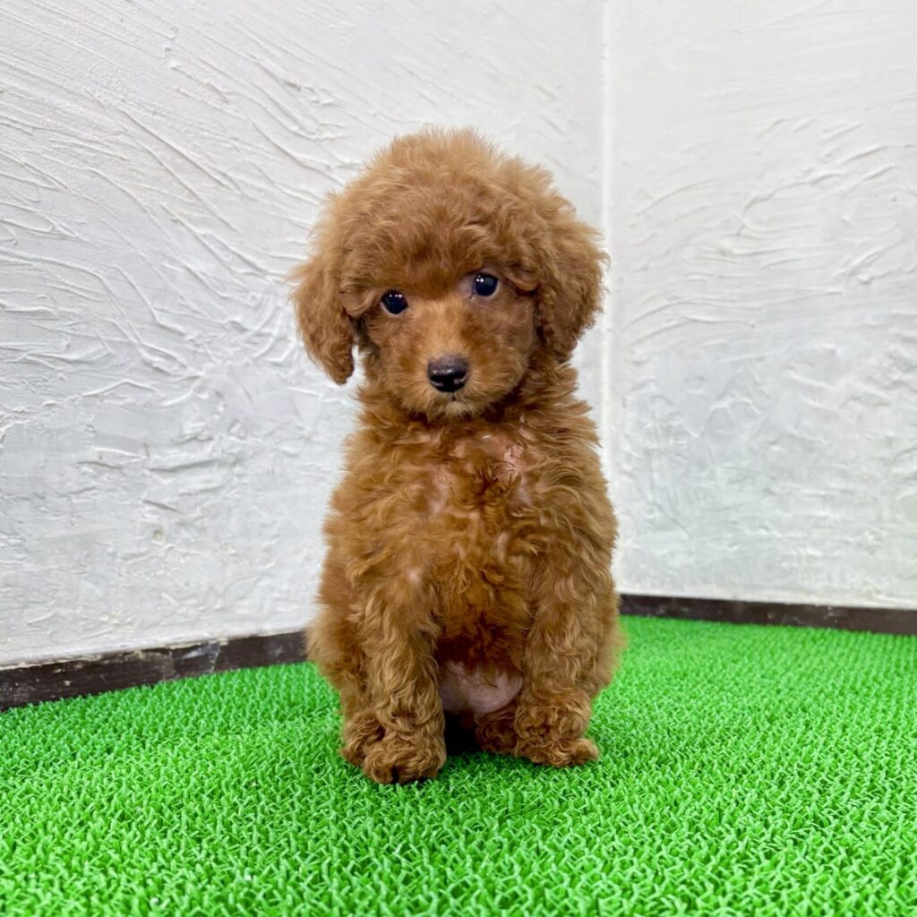 キャバプー ミックス犬の中でも特に人気の高い、キャバリア・キング・チャールズ・スパニエルとトイプードルのミックスから生まれた、とても可愛い女の子です。レッドカラーがよく映えるふわっとした被毛に、クリクリの大きな瞳が魅力的で、見つめられるだけで心がほぐれる愛らしさがあります。キャバリア・キング・チャールズ・スパニエルの優しい雰囲気と、トイプードルのキュートな表情をどちらも受け継いだ、美しいバランスのキャバプーです。