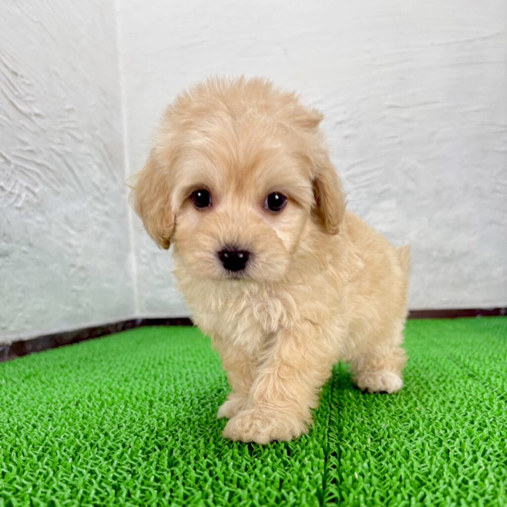 やわらかなアプリコットカラーの毛並みがとてもかわいい、ミックス犬 マルプーの男の子 “クリクリ君” をご紹介します。元気いっぱいで甘えん坊な性格を持ち、見ているだけで自然と笑顔になれる愛らしい子犬です。ミックス犬ならではの個性あふれる魅力があり、千葉・東京・関東エリアでも初心者向けで飼いやすい子としておすすめできます。