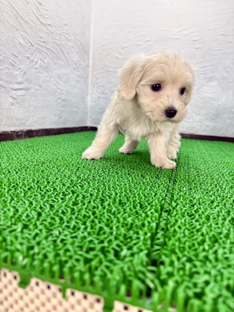 やわらかいクリームカラーがとてもかわいい、ミックス犬 マルプー の女の子をご紹介します。マルチーズとトイプードルの魅力を受け継いだミックス犬で、ふんわり柔らかい毛並みと愛らしい表情が特徴です。甘えん坊で人懐っこい性格のため、千葉・東京・関東エリアでも初心者向けで飼いやすい子犬としておすすめできます。