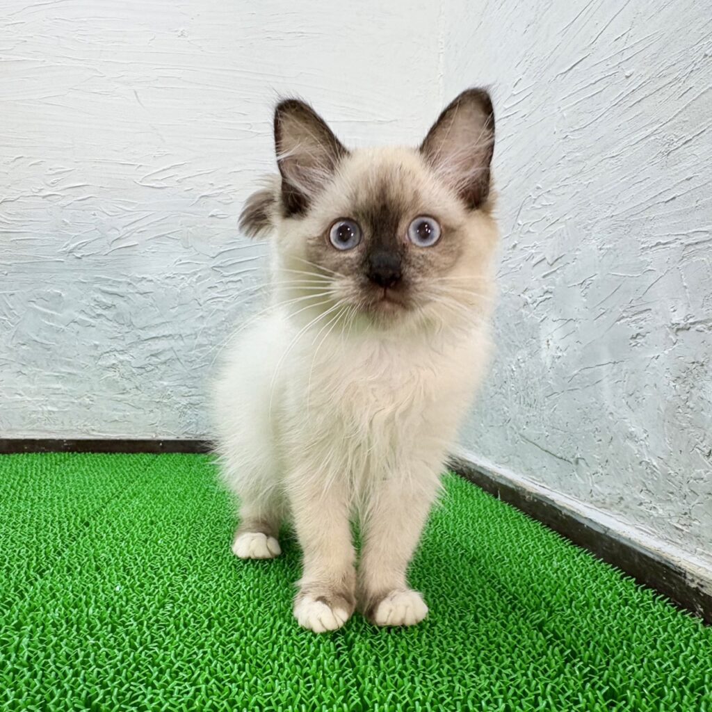 シールポイントは成長とともに色味が深まり、顔つきもぐっと優雅に変化していく人気カラー。抱っこが好きで甘えん坊なこのラグドールの女の子は、一緒に過ごす時間が増えるほど魅力があふれ出すような存在です。飼いやすい性格を求める方や、初めてのペットを迎える方にもぴったりの一匹。千葉・東京・関東でかわいい猫ちゃんをお探しの方に、ぜひご覧いただきたい子です。