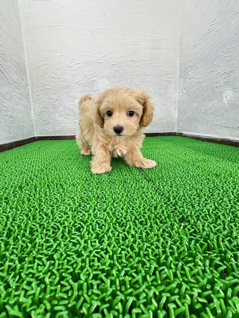 個性的で魅力あふれる毛色がかわいいミックス犬、マルプーの男の子をご紹介します。マルチーズとトイプードルの両方の魅力を受け継いだミックス犬で、ふんわりとした被毛と優しい表情が愛らしく、見ているだけで思わず笑顔になるような特別な雰囲気を持っています。甘えん坊で人が大好きな性格のため、千葉・東京・関東エリアでも初心者向けで飼いやすいミックス犬として人気のタイプです。