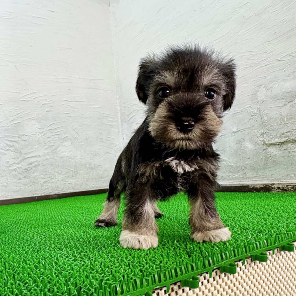 ソルト&ペッパーの美しいカラーと、シュナウザーらしい賢さ・忠実さを兼ね備えた、とても魅力的な子犬です。千葉・東京・関東でミニチュアシュナウザーの子犬を探している方にもおすすめの、愛嬌たっぷりの男の子です。