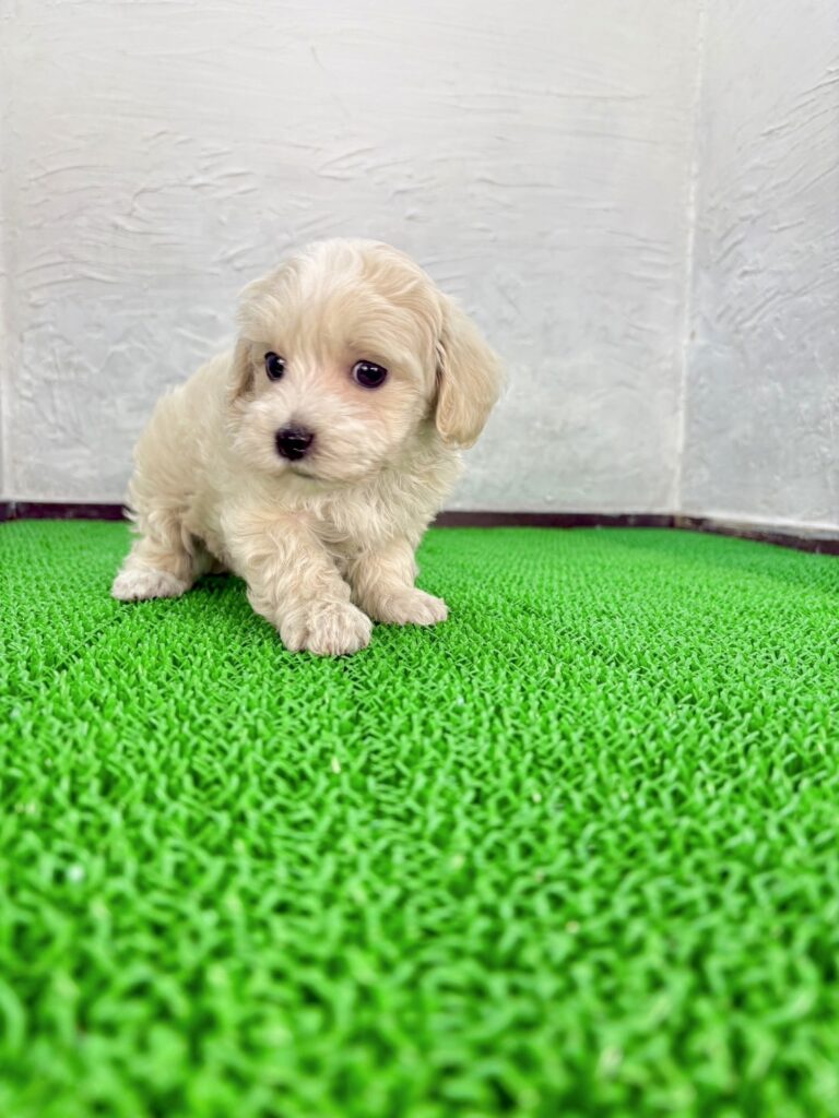 クリーム&ホワイトカラーがかわいらしいマルプーの男の子は、見た目の愛らしさと甘えん坊な性格を兼ね備えた特別な存在。ご家庭に迎えれば、毎日の暮らしに癒しと笑顔をたっぷり届けてくれることでしょう。気になる方はぜひお早めにお問い合わせください。