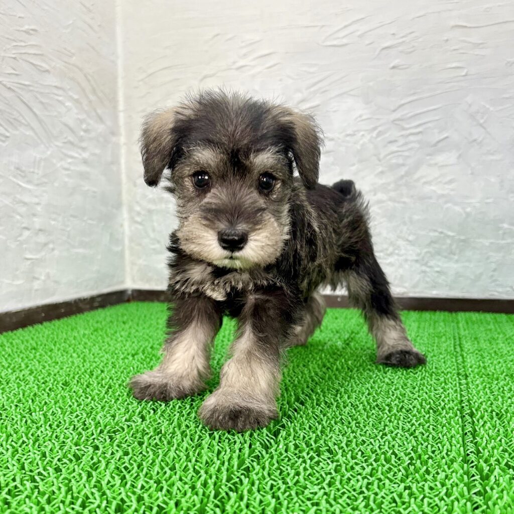 優しいまなざしがとてもかわいい、ミニチュア・シュナウザーの男の子“トントン君”をご紹介します。落ち着きのあるソルト&ペッパーの毛色がよく映え、シュナウザーらしい凛々しさの中に、無邪気さと甘えん坊な性格が同居した魅力的な子犬です。千葉・東京・関東エリアでも根強い人気を持つ犬種で、初心者向けで飼いやすい点も大きな特徴です。