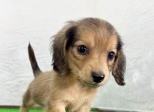 性格はとても甘えん坊で、人がそばにいると安心するタイプ。呼ぶと嬉しそうに寄ってきてくれる可愛い一面があり、初めて子犬を迎えるご家庭にも育てやすい性格です。遊ぶときは元気に動き回り、甘えるときはしっかり寄り添うバランスの良さも魅力。小型犬を探している方や、ミニチュアダックスの個性的なカラーを求める方にも理想的な一匹です。千葉・東京・関東で子犬をお探しの方にもおすすめの、とてもかわいらしく希少価値の高いミニチュアダックスの子犬です。