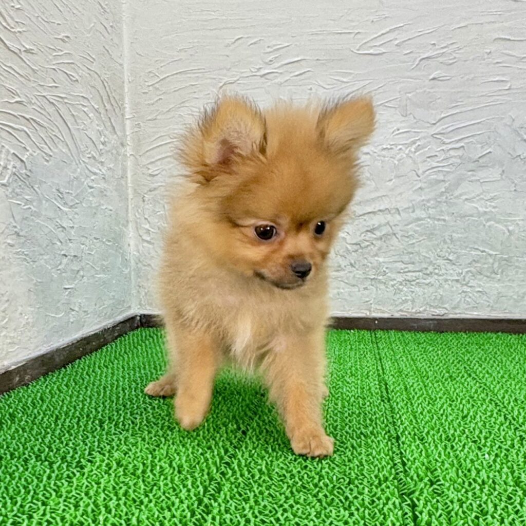 ふわふわの被毛とつぶらな瞳が魅力のポメラニアンの男の子が、マルプリティに仲間入りしました。人気のオレンジカラーで、まるで小さな“ぬいぐるみ”のようなかわいい雰囲気が特徴です。明るく愛らしい見た目はもちろん、性格も陽気で甘えん坊。人と触れ合うことが大好きで、抱っこされると嬉しそうにしっぽを振ってくれます。千葉・東京・関東エリアで子犬販売を行う当店でも、特にお問い合わせの多い犬種です。