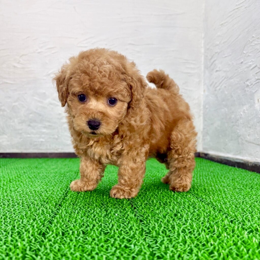 マルプーの女の子が、マルプリティに仲間入りしました。鮮やかなレッドの毛色がとてもかわいく、ふわふわの毛並みとクリクリとした瞳が印象的な子犬です。甘えん坊で人懐っこく、抱っこされると安心したように体を預けてくれる性格は、ミックス犬ならではの柔らかさと愛らしさを兼ね備えています。初めて会う方にもすぐに打ち解けるため、家族の一員としてすぐに馴染むことができる子です。