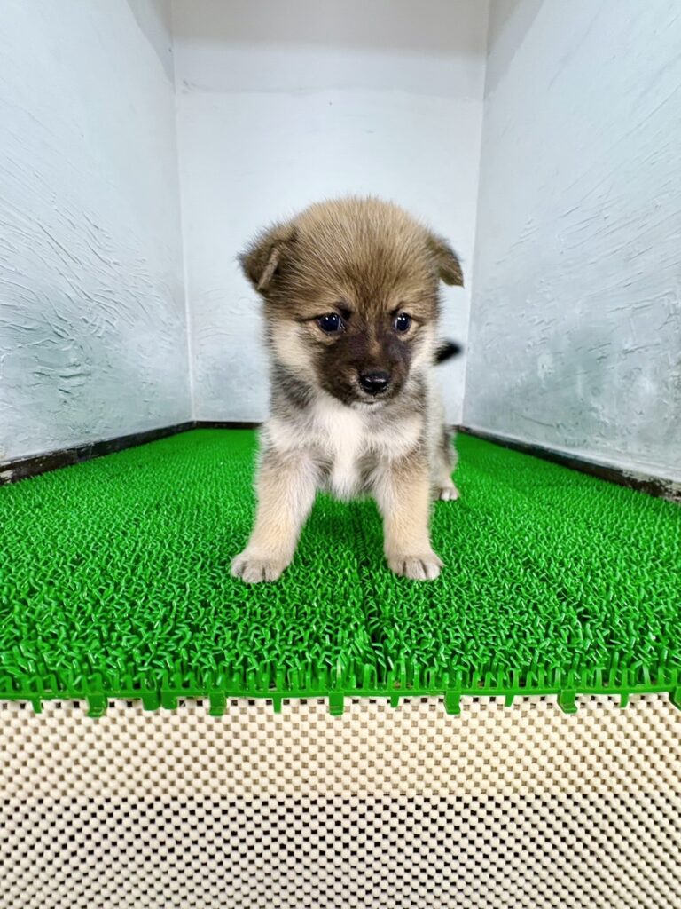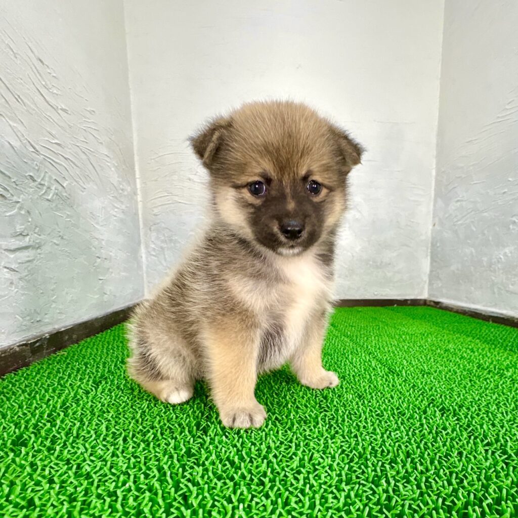 ころんとしたフォルムと、赤毛の美しい被毛が印象的なポメ柴の女の子がマルプリティに仲間入りしました。ポメ柴はポメラニアンと柴犬の魅力をあわせ持つミックス犬で、和風の可愛らしさと洋犬のふんわり感が絶妙にマッチした、個性あふれる子犬です。つぶらな瞳とやさしい表情は、見ているだけで心がほっと和みます。