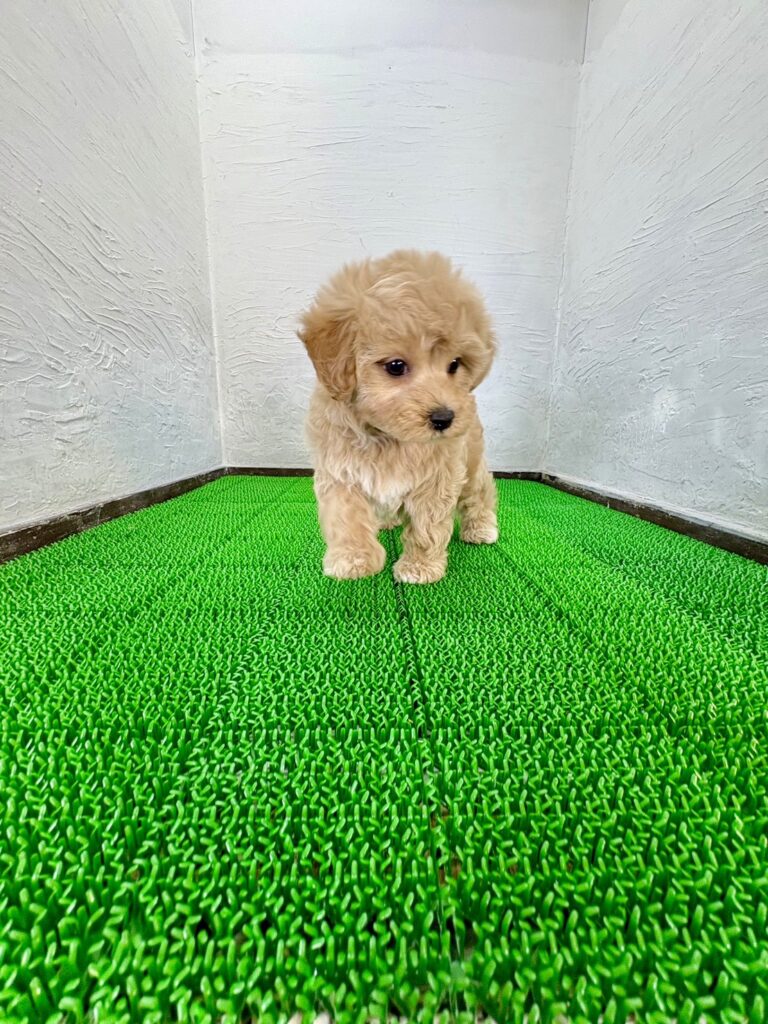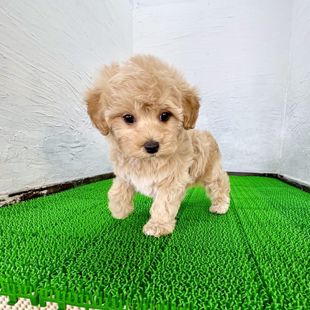 ふんわり優しい雰囲気がたまらない、マルプーの女の子です。毛色はやさしいクリームカラーで、ぬいぐるみのような柔らかな印象。見ているだけで心がほっと和みます。