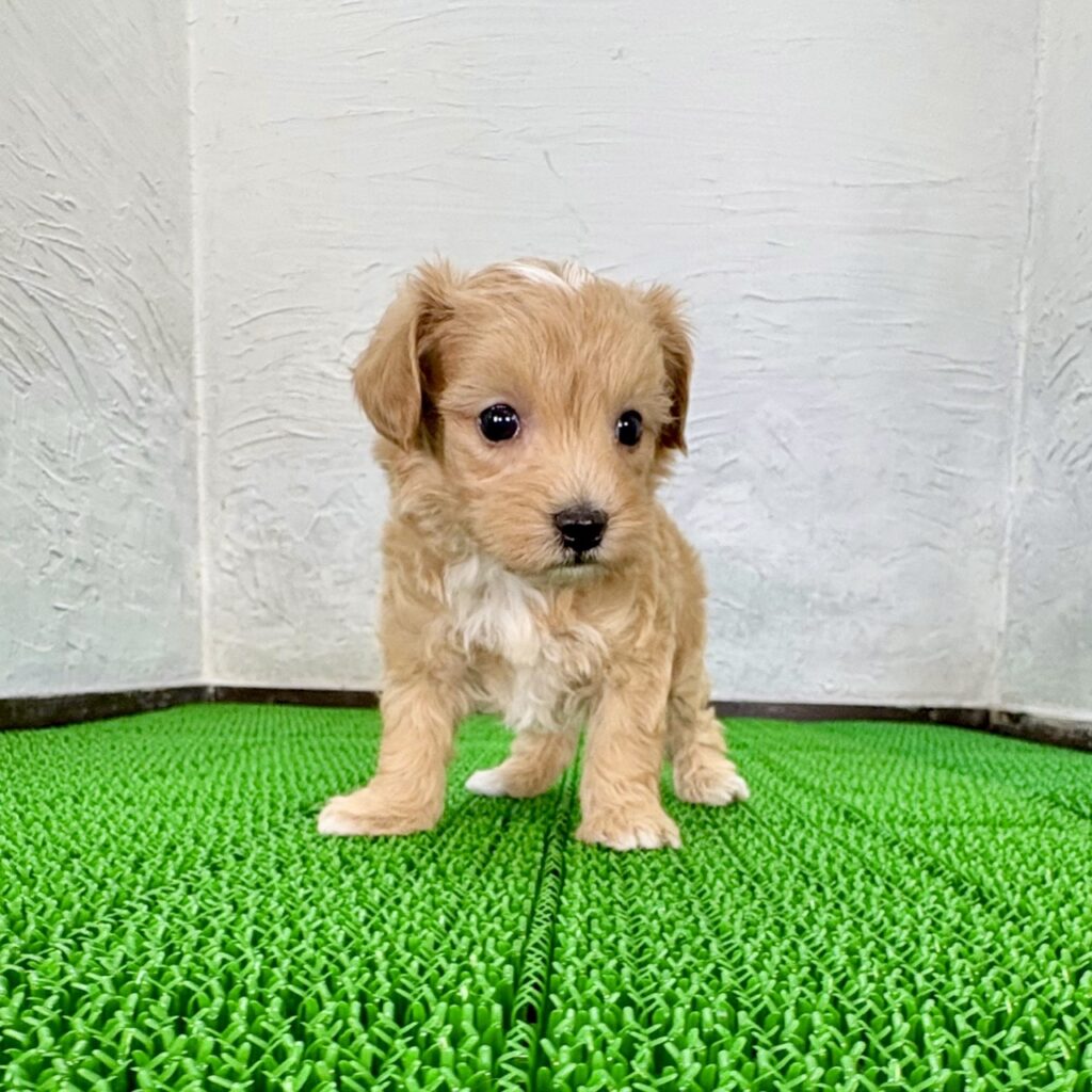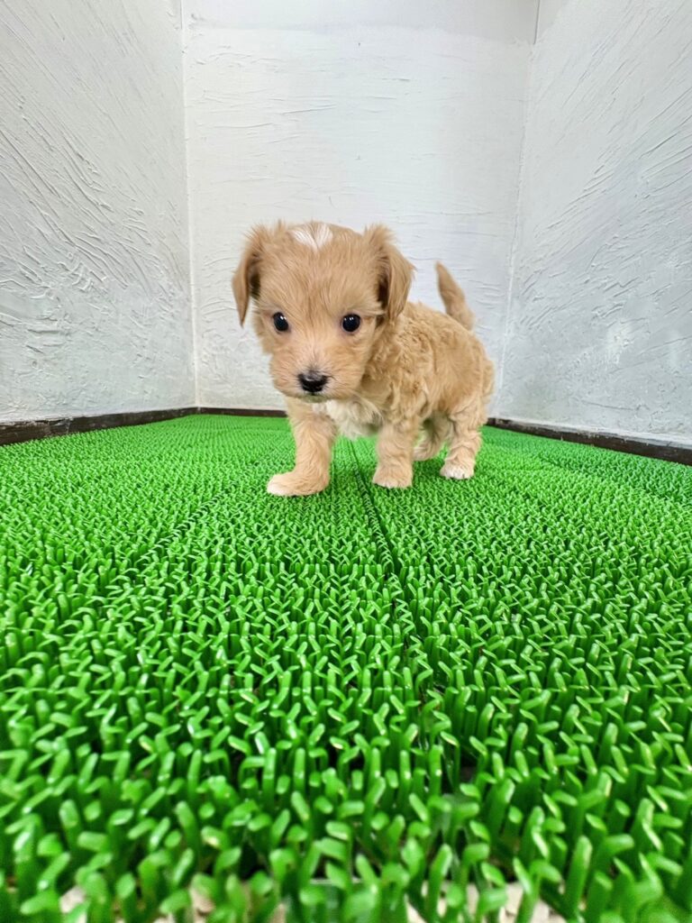 ふんわりとしたアプリコット&ホワイトカラーが魅力の、マルプーの男の子です。やさしい色味の被毛に包まれた姿はとても愛らしく、見ているだけで心が和みます。