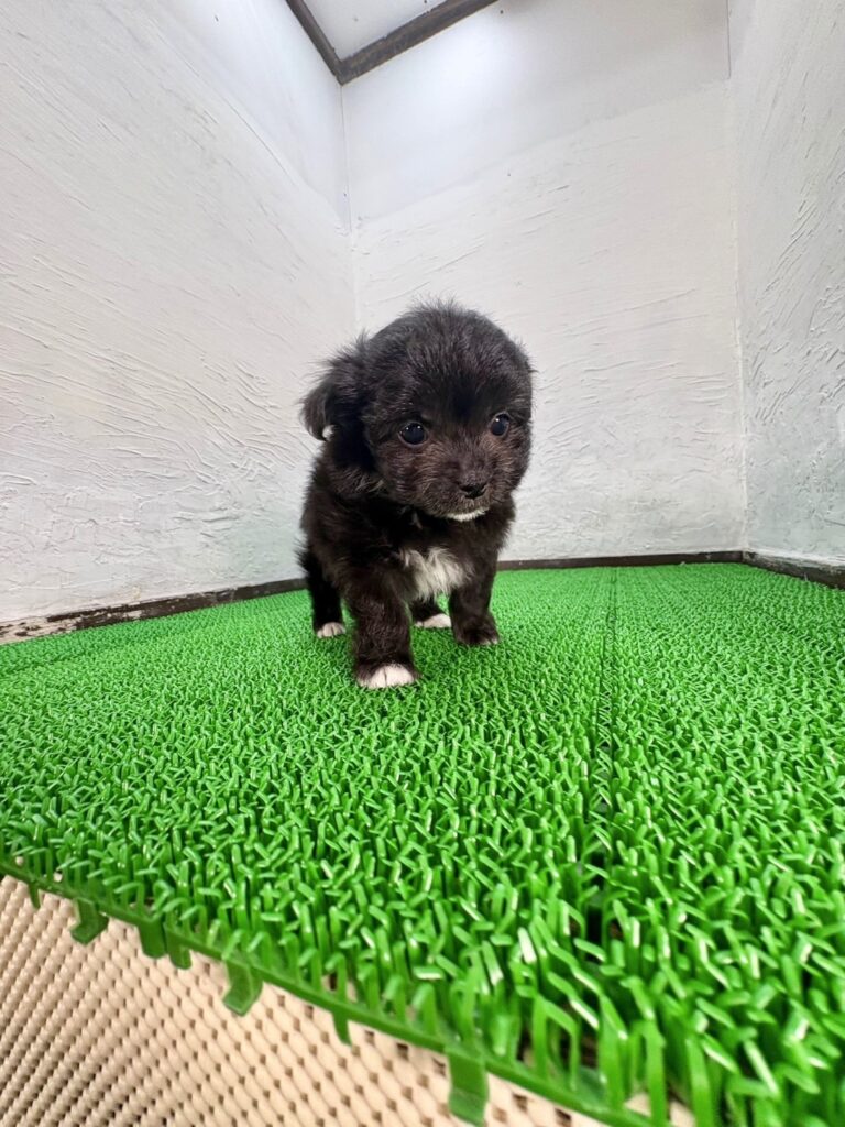 千葉・東京・関東エリアで子犬販売を行うマルプリティより、愛らしさと個性をあわせ持つミックス犬「マルチワ」の男の子をご紹介します。毛色は印象的なブラック&ホワイトで、はっきりとしたカラーコントラストとつぶらな瞳がとてもかわいい子犬です。ミックス犬ならではの表情豊かな魅力があり、見ているだけで自然と心が和みます。