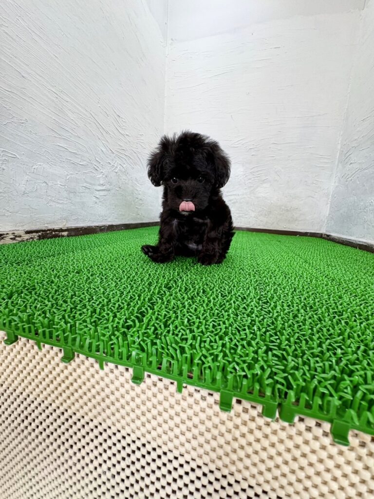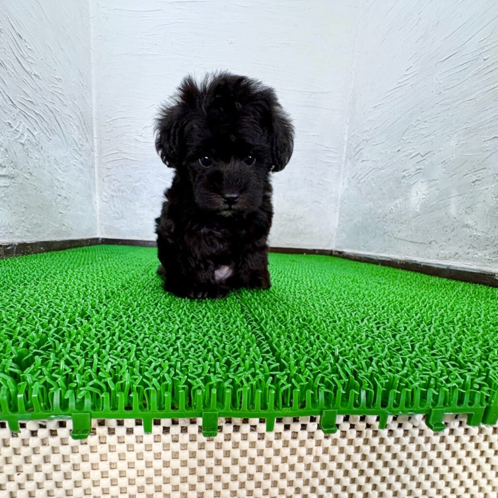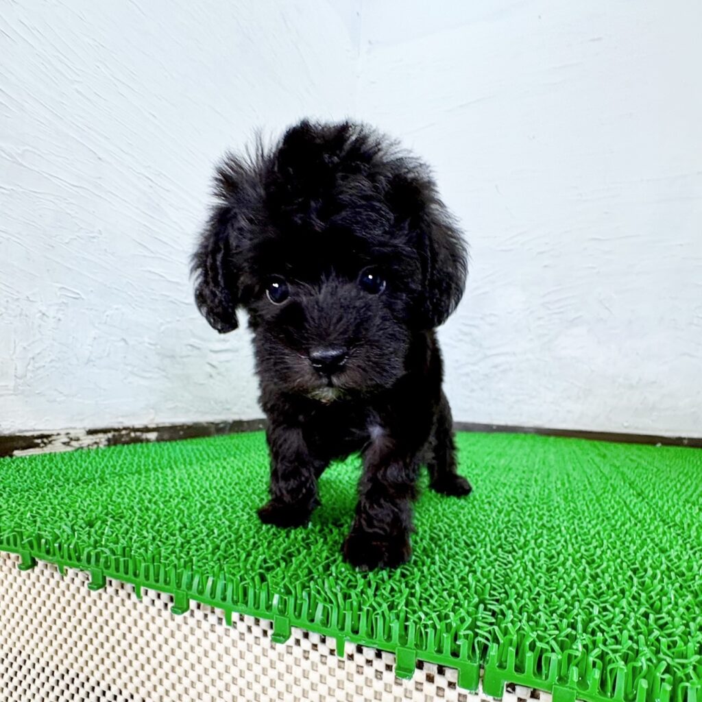 つややかなブラック&シルバーの被毛が印象的な、シュナプーの男の子です。
