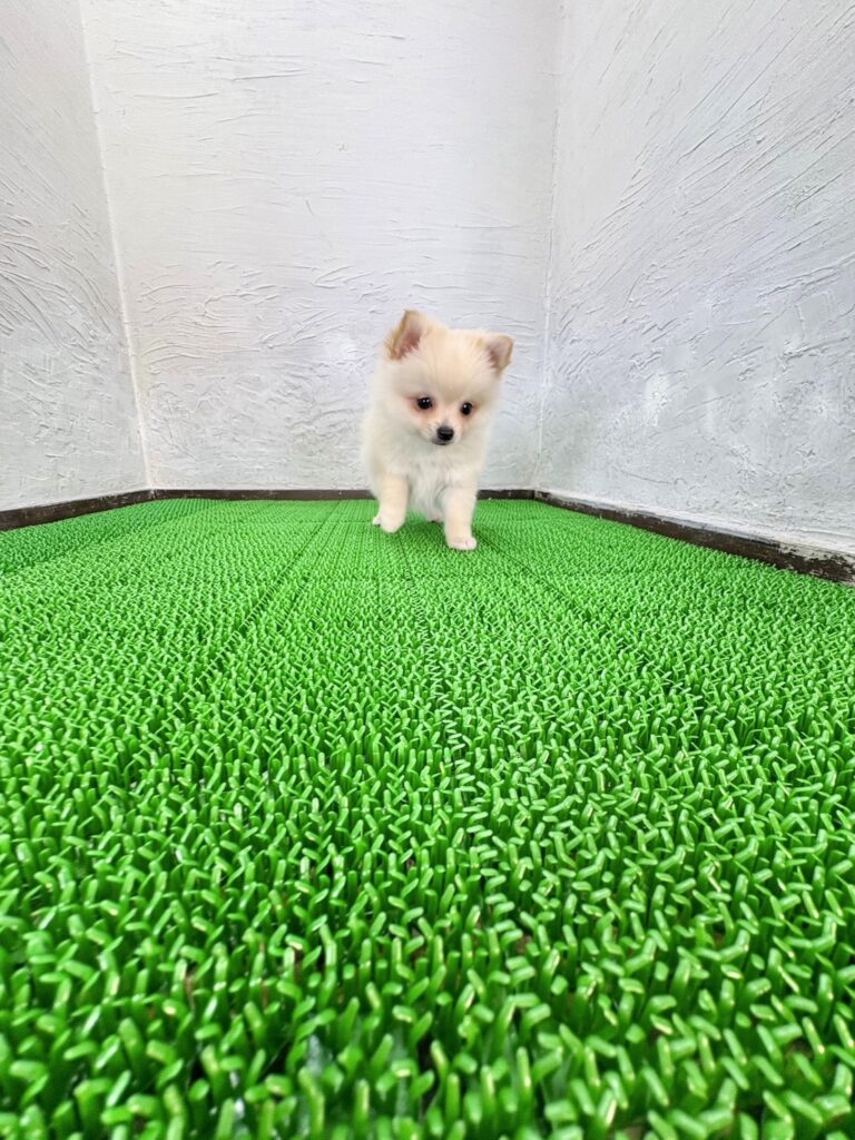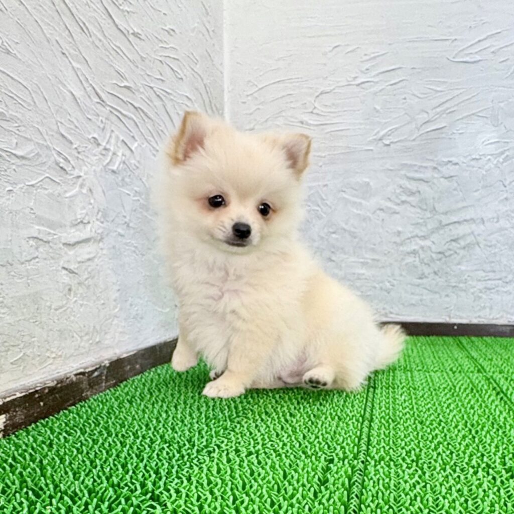やさしいクリームカラーと、ふんわりした被毛が魅力のポメチワの男の子です。