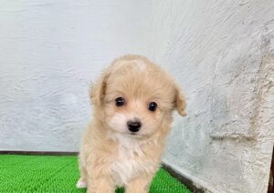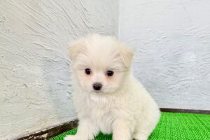 ふわっとしたクリーム&ホワイトの被毛が目を引く、ポメマルの女の子です。ポメラニアンのもこもことした毛量と、マルチーズの上品でやさしい雰囲気をあわせ持ち、ぬいぐるみのような可愛らしさが魅力。毛色は清潔感があり、どの角度から見ても愛らしい印象を与えてくれます。