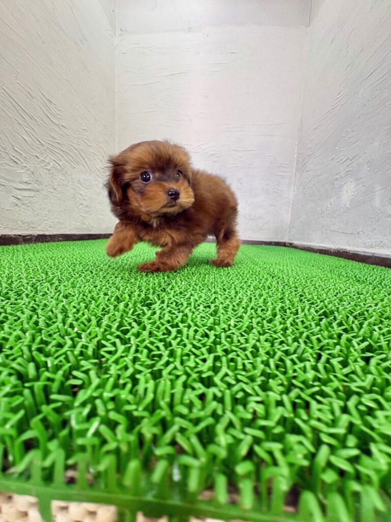 ポメラニアンのふんわりとした被毛と、トイプードルの愛らしい表情をあわせ持つ、ぬいぐるみのような可愛らしさがあります。