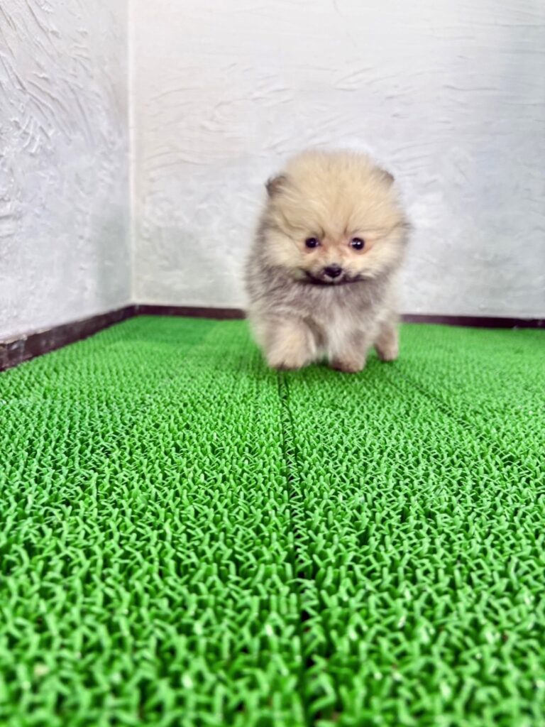 やさしく淡いフォーンカラーがとても上品な、ポメラニアン×マルチーズのミックス犬、女の子がマルプリティに仲間入りしました。ふんわりとした被毛と、つぶらな瞳が印象的で、胴が詰まってショートボディー、見た瞬間に心を奪われるほどかわいい子犬です。ポメラニアンの愛らしさとマルチーズの清楚な雰囲気がバランスよく合わさった、ミックス犬ならではの魅力をたっぷり感じられます。