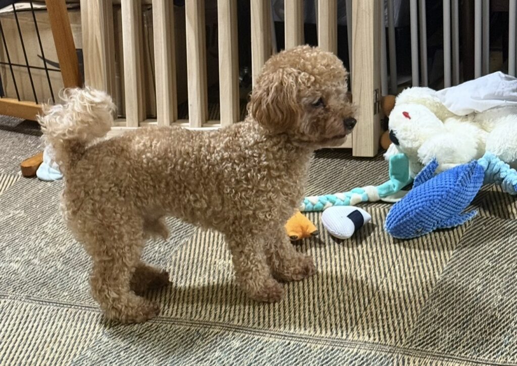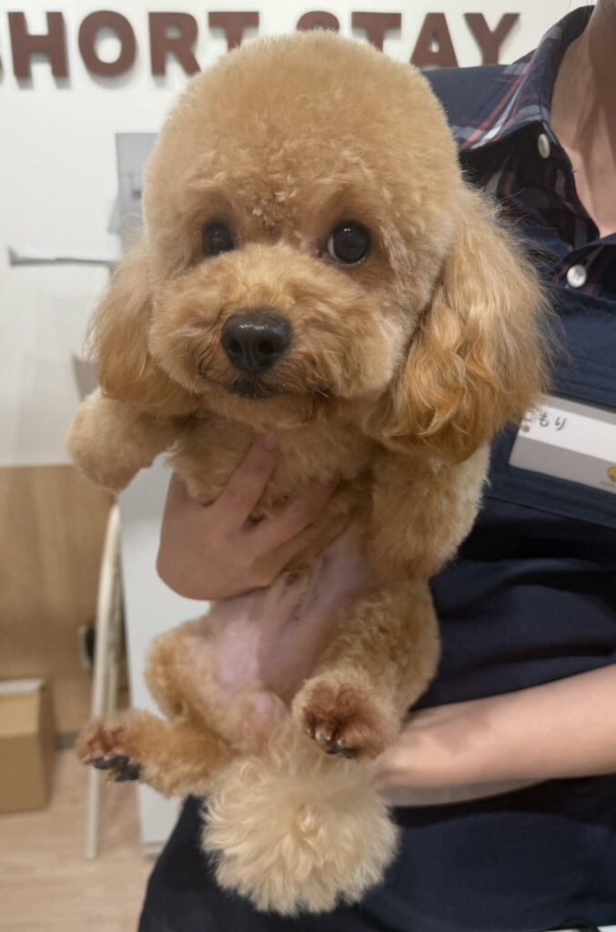 トイプードル特有のやわらかなカールの毛並みと、ぬいぐるみのような愛らしい見た目が魅力の子。成犬ですがまだ若く、これから新しい家族とたくさんの時間を過ごしていける年齢です。