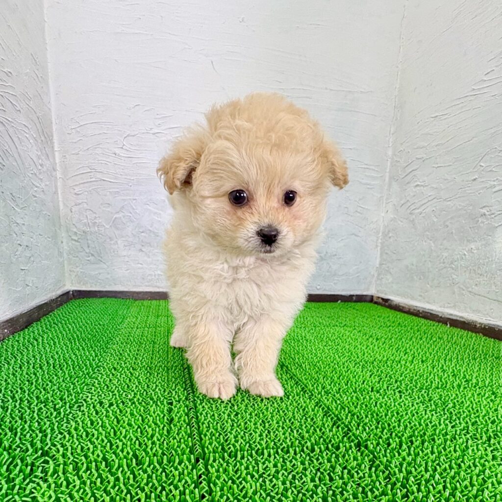ふんわりと優しいクリームカラーがとても愛らしい、ポメプーの女の子です。