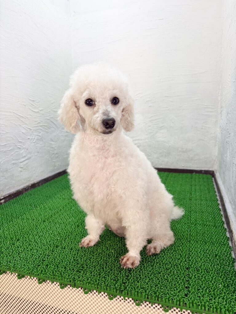 つぶらな瞳とホワイトの毛色が魅力的な、保護犬の女の子のご紹介です。とても人懐っこくかわいい性格、人が大好きで、甘えん坊な一面があります。