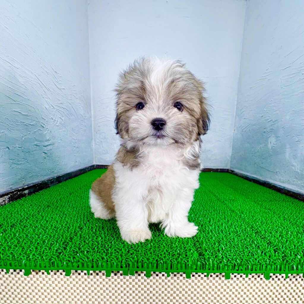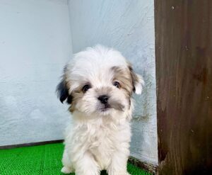 やさしいゴールド&ホワイトの毛色が印象的な、マルチーズ×シーズーのミックス犬の男の子がマルプリティに仲間入りしました。ふんわりとした被毛と穏やかな表情がとてもかわいく、そばにいるだけで心が和む存在感のある子犬です。ミックス犬ならではのバランスの取れた見た目と、親しみやすさが大きな魅力です。