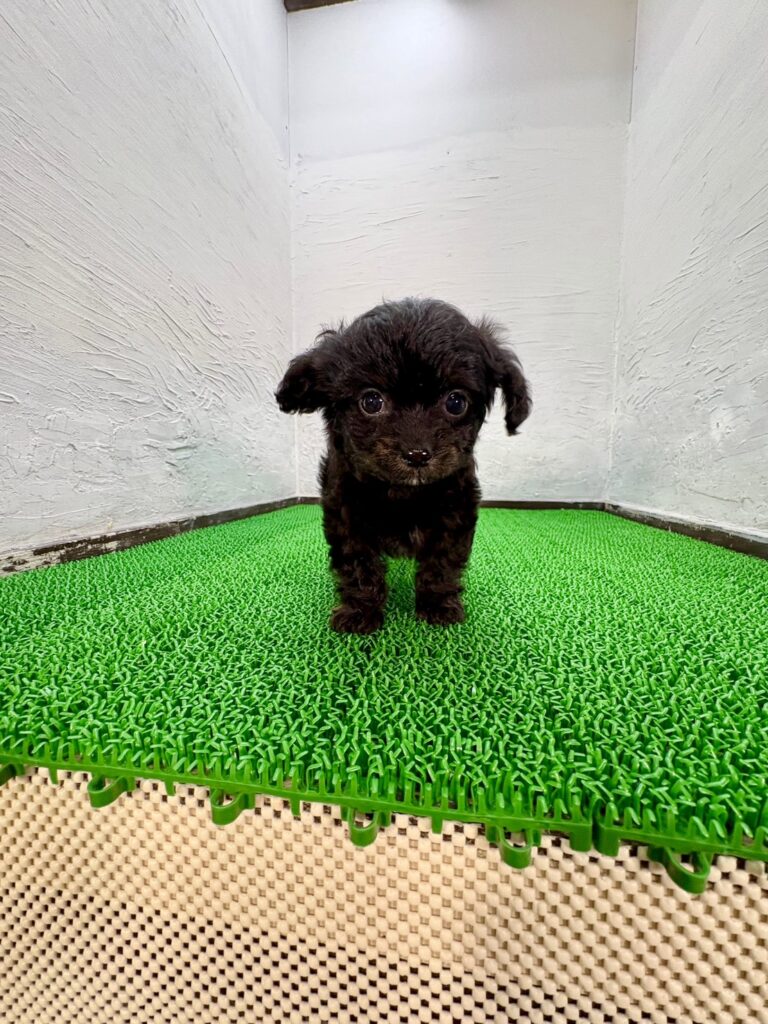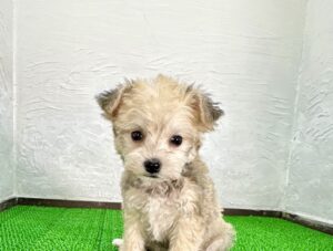 艶のあるブラックが美しく映えるチワプーのミックス犬の男の子がマルプリティに仲間入りしました。引き締まった毛色と愛らしい表情のバランスがとてもかわいく、見た瞬間に心を惹きつけられる子犬です。ミックス犬ならではの個性と魅力がしっかり感じられる存在で、成長とともにさらに表情豊かになっていきます。