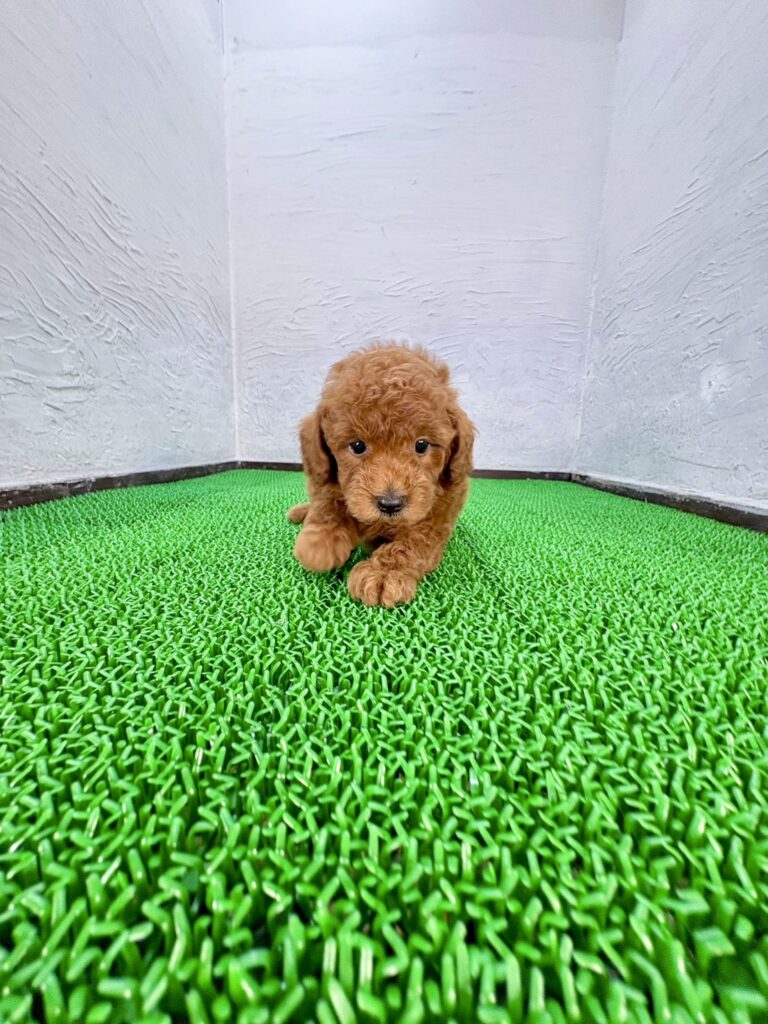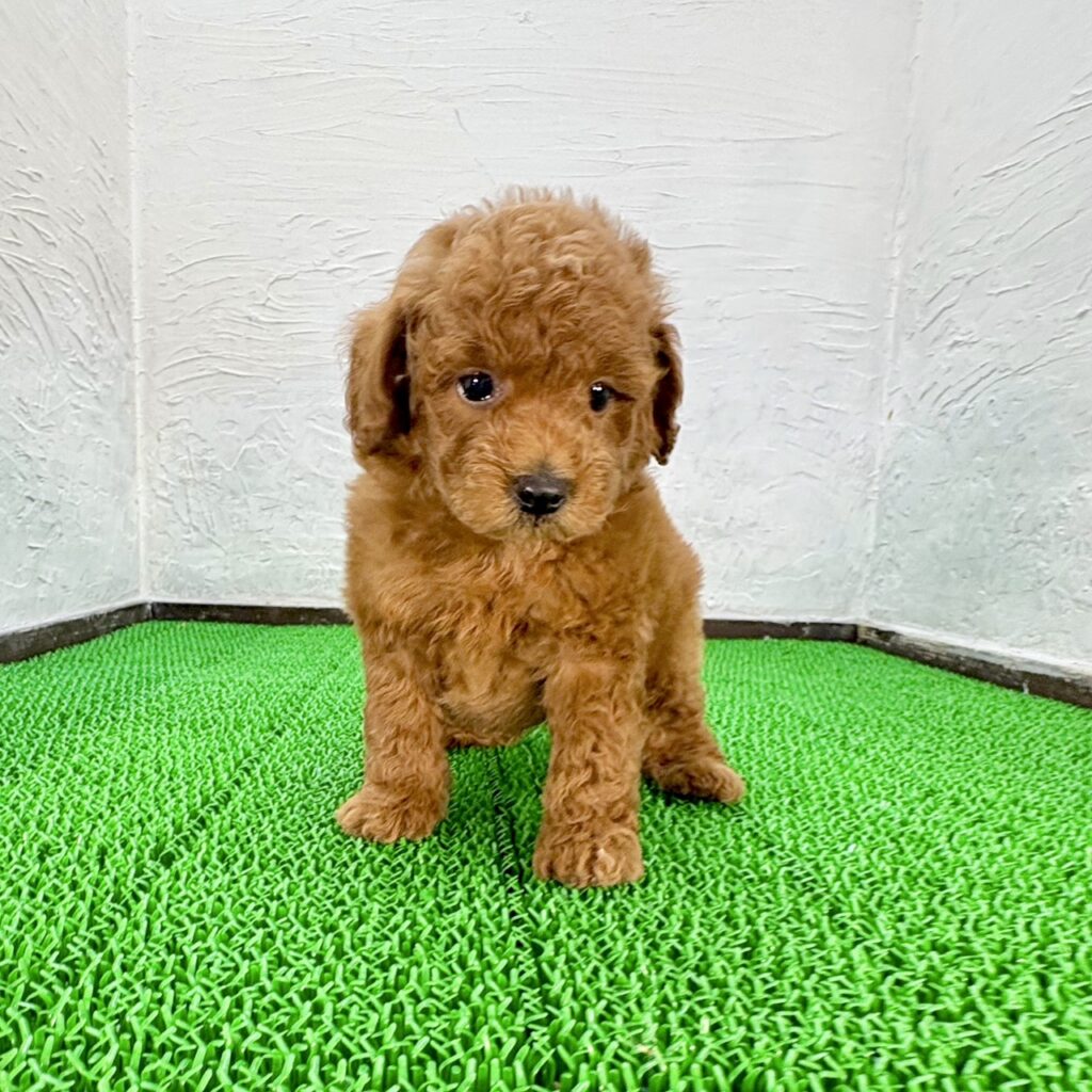 トイプードルの男の子が、マルプリティに仲間入りしました。鮮やかなレッドの毛色がとてもかわいく、ふわふわの巻き毛とつぶらな瞳が魅力的な子犬です。人懐っこく甘えん坊な性格で、抱っこされると安心したように体を預けてくれる姿がとても愛らしく、初めて会う方にもすぐに心を開いてくれます。家族のそばにいることが大好きで、一緒に過ごす時間が増えるほど絆が深まっていくタイプの男の子です。