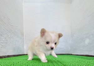 マルチーズのやわらかな雰囲気と、チワワの愛らしい表情をあわせ持つ、とても可愛いミックス犬です。