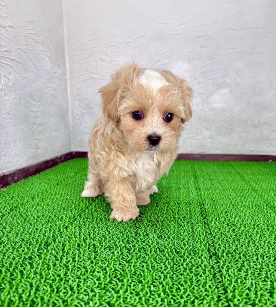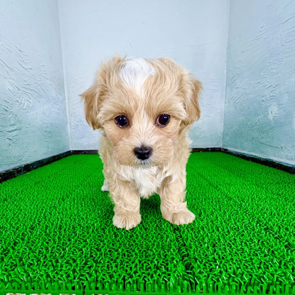やさしいアプリコットカラーの被毛がふんわりと映える、マルプーのミックス犬の男の子がマルプリティに仲間入りしました。丸みのあるお顔立ちとつぶらな瞳がとてもかわいく、見た瞬間に思わず笑顔になってしまう子犬です。ミックス犬ならではの柔らかな雰囲気と、親しみやすい表情が魅力で、日々の暮らしに自然と溶け込んでくれます。