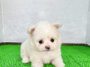 千葉・東京・関東エリアで子犬販売を行うマルプリティが、ぜひご紹介したいポメチワマルの男の子です。ホワイトとクリームがやさしく混ざり合った毛色はとても上品で、ぬいぐるみのようなかわいい見た目が印象的な子犬です。ポメチワマルは、ポメラニアン・チワワ・マルチーズそれぞれの魅力を受け継いだミックス犬で、個性と愛らしさをしっかり感じられる犬種として人気があります。