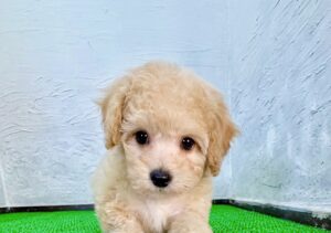 ふんわりとした白い被毛が印象的な、ビションフリーゼとマルチーズのミックス犬の女の子です。やさしく清潔感のあるホワイトカラーは、ミックス犬ならではの柔らかな雰囲気をより一層引き立てており、思わず抱きしめたくなるほどかわいい子犬です。丸みのある表情と愛らしい仕草は、毎日の暮らしに自然と笑顔を運んでくれます。