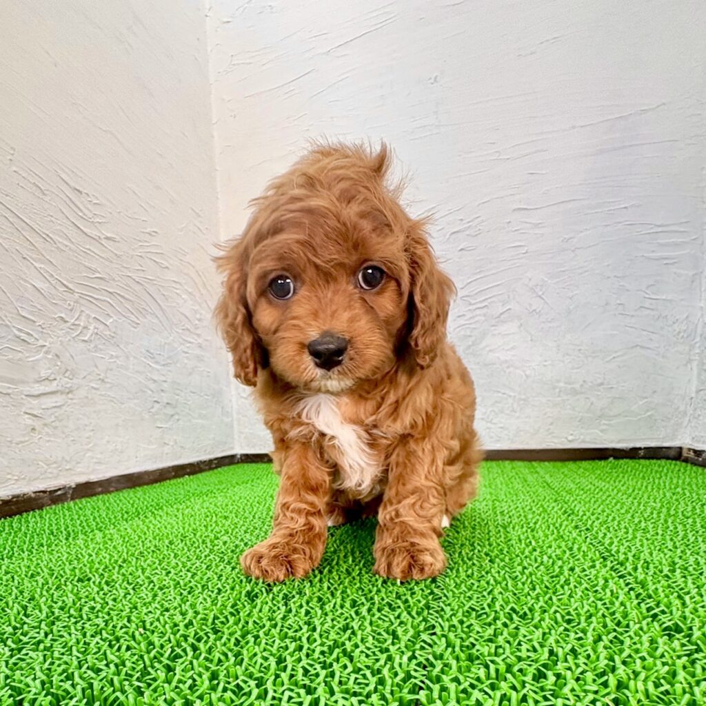 つぶらな瞳とふんわり優しい雰囲気が魅力の、キャバプーの男の子です。キャバリアの穏やかで愛情深い性格と、トイプードルの賢さをあわせ持った、バランスのとれたミックス犬。毛色は「その他」で、世界にひとりだけの個性的なカラーがチャームポイントです。