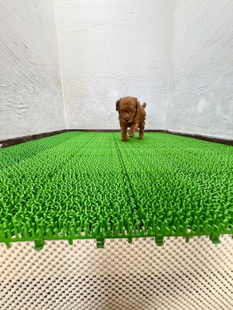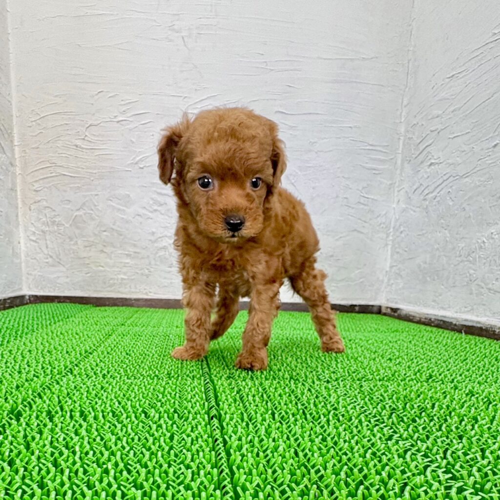 くるくるとした豊かな巻き毛が印象的な、トイプードルの男の子です。毛色は人気の高いレッド。深みのあるあたたかな色合いで、成長とともに表情もぐっと豊かになっていきます。